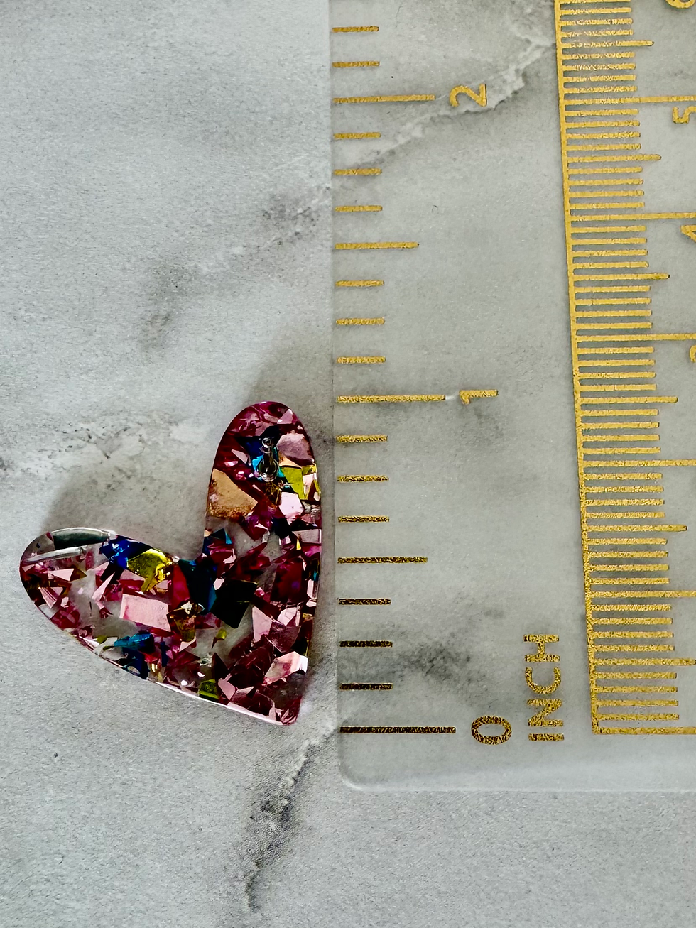 Set of 3 Heart Stud Earrings Red/Black/White & Black Hearts